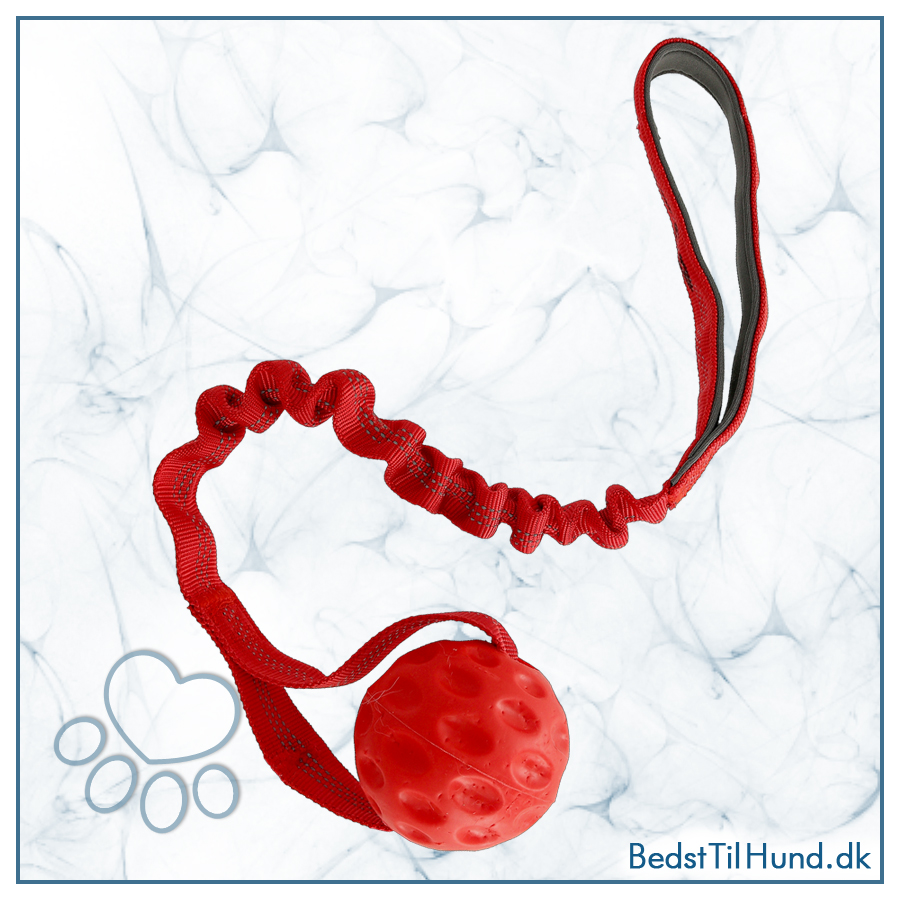 Hård bold i en elastisk snor. Et robust og holdbart belønningslegetøj til boldglade hunde, der elsker at løbe og trække. Bolden har en struktureret overflade, som gør den nem for hunden at gribe, og sammen med den elastiske del og det polstrede håndtag er den let at kaste og bruge i trækkeleg. Perfekt til hunde, der elsker fart, jagtlege, tygning og trækkeleg! Hold altid din hund under opsyn under leg, og fjern legetøjet med det samme, hvis det går i stykker og når i er færdige med at lege, ellers bliver stofdelen tygget i stykker.