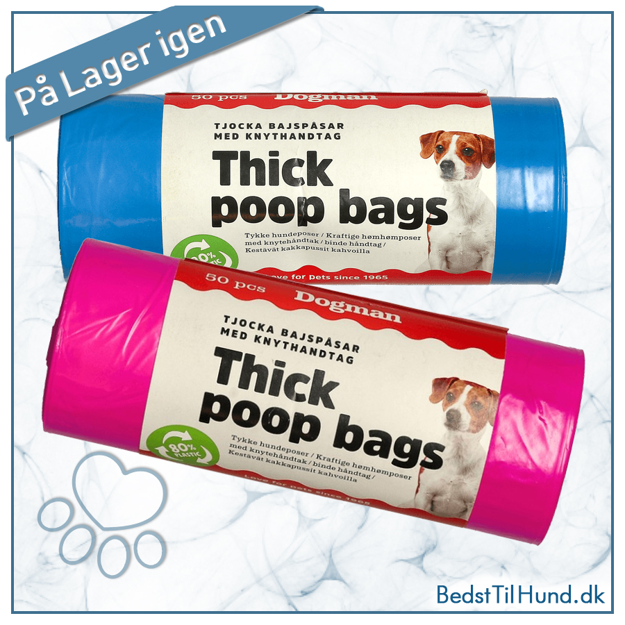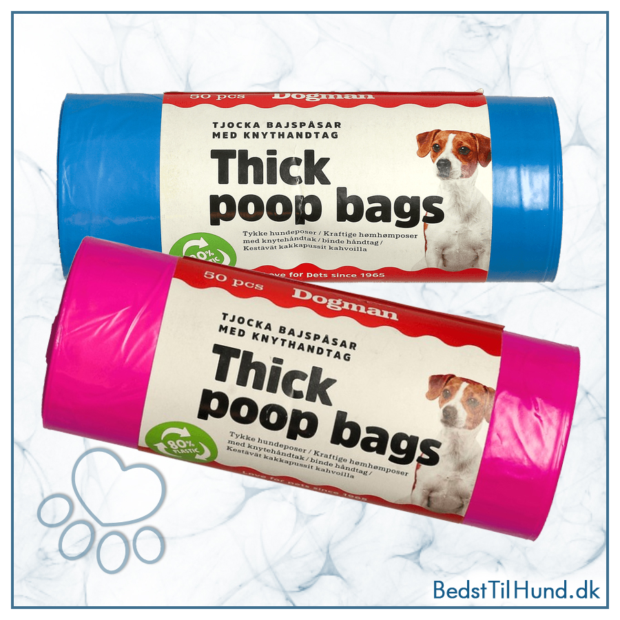Tyk hundepose af slidstærk og kraftig kvalitet. Hundeposen er velegnet til hunde i alle størrelser og er perfekt til at tage med på gåture! Lavet af 80% genbrugsplast. Med bindehank. Leveres i ruller med 50 stk. Det er en kvalitet der er så god, at selv en mand kan samle op uden at få lort på fingrene! Ved køb af flere ruller, sparre du 2,50 kr pr rulle.