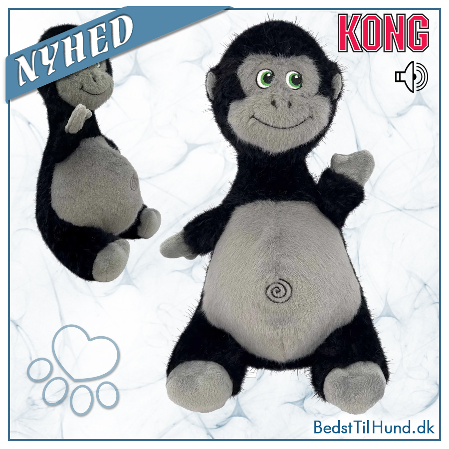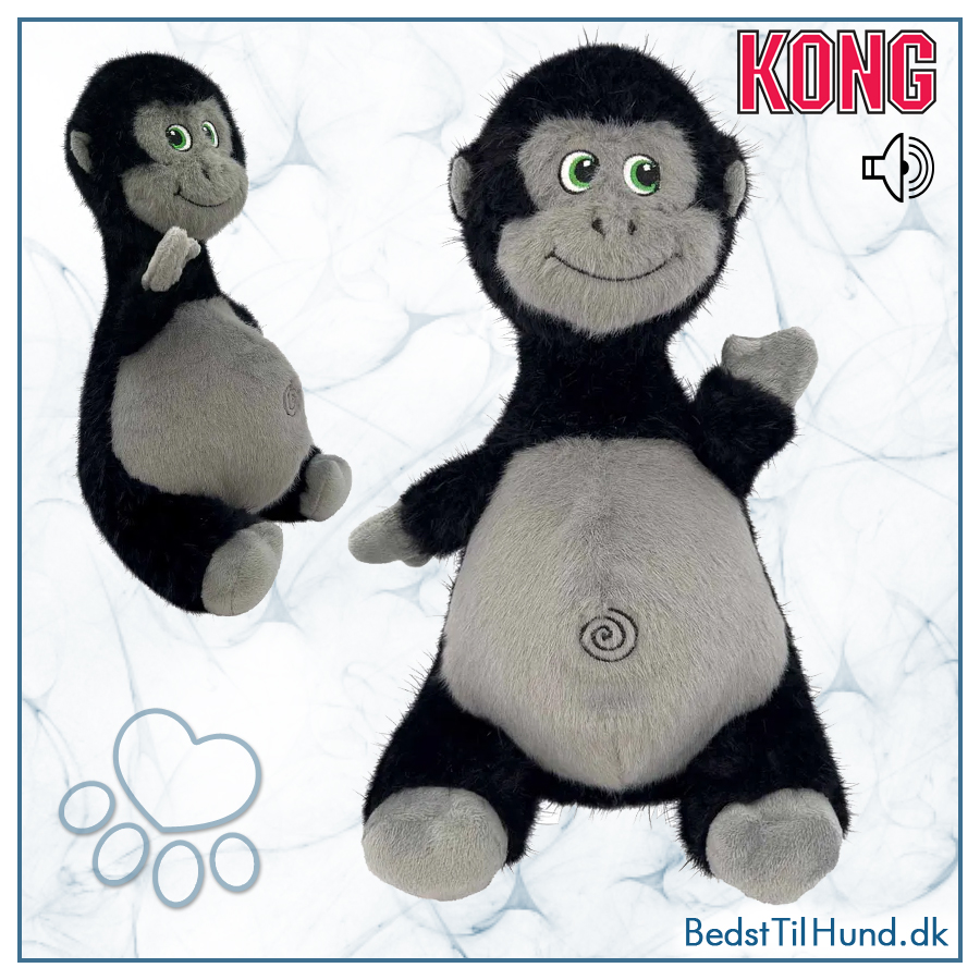 KONG Knots Belly Gorilla er blød og hyggelig på ydersiden med en stærk, holdbar rebkugle indeni, der gør dens mave rund og tung. Denne tætte indre skelet-kugle tilføjer vægt og bevægelse, der tiltrækker instinktiv rusken, kasten og let tygning. En squeaker i denne gorillas hoved vækker hundenes interesse og tilføjer spænding til legesessionerne. Knots Belly Gorilla er også ideel til hunde, der kan lide at bære deres legetøj, samt til lurens kram. Hav det sjovt med at se, hvilken måde din hund kan lide at engagere sig med dette multifunktionelle legetøj!