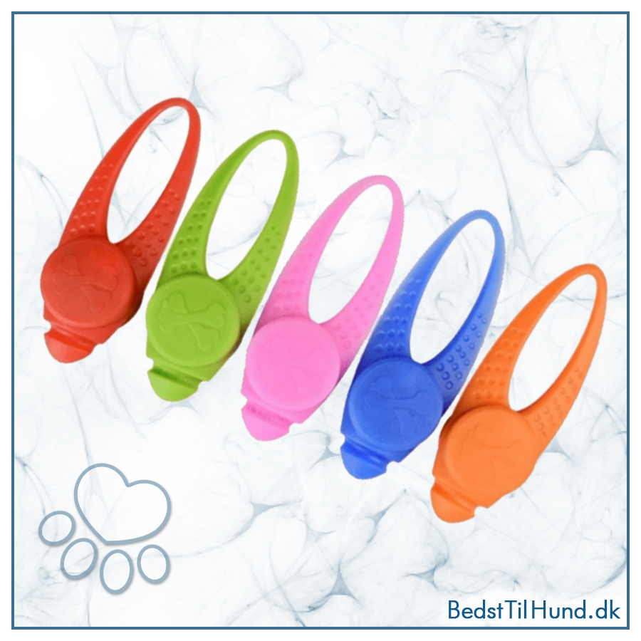 Smart lille vedhæng til at sætte på halsbåndet, selen eller linen. Så er der lys når det er mørkt og i kan blive set. Lyset er let at sætte på og tage af igen, Den bløde selikone bøjes bagom linen/halsbåndet og klemmes udenom bunden. Du tænder den medet tryk og så lyser den konstant. To tryk giver hurtig blink og tre tryk er langsom blink. Med et tryk mere slukker du for diskolyset. Vedhænget er vandtæt til en gåtur i det danske vejr. Der er et lille batteri i den som kan skiftes efter behov.