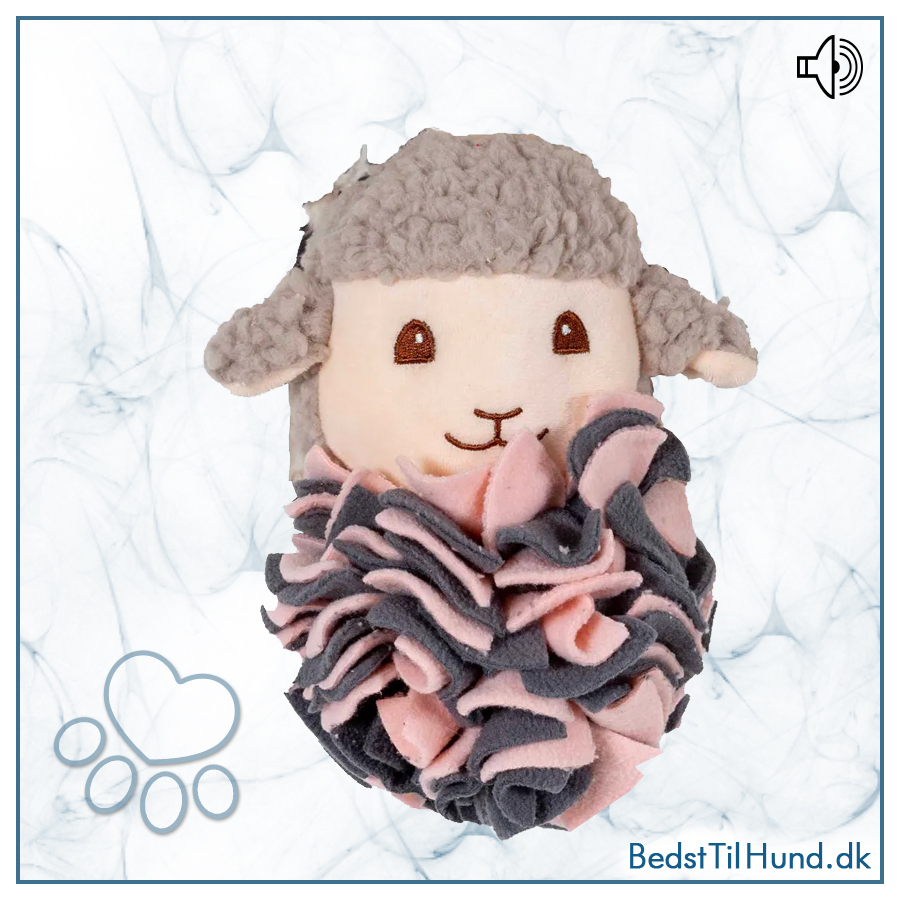 Ozami Dog Toy Snuffle Lamb er et interaktivt hundelegetøj med indbygget snusefunktion. Det måler 18 x 13 cm og er lavet i blød fleece og plys. Den rosa og grå “uld” består af flere lag stof, hvor man kan gemme godbidder – perfekt til at stimulere hundens lugtesans og give rolig, fokuseret aktivering. Velegnet til små og mellemstore hunde.