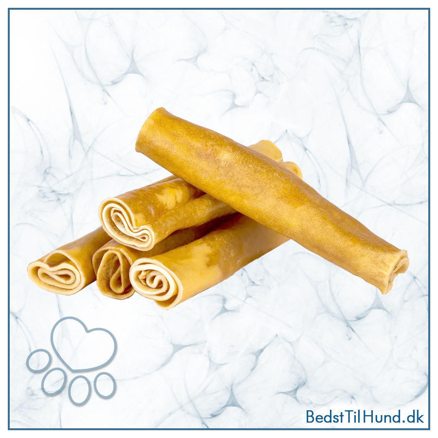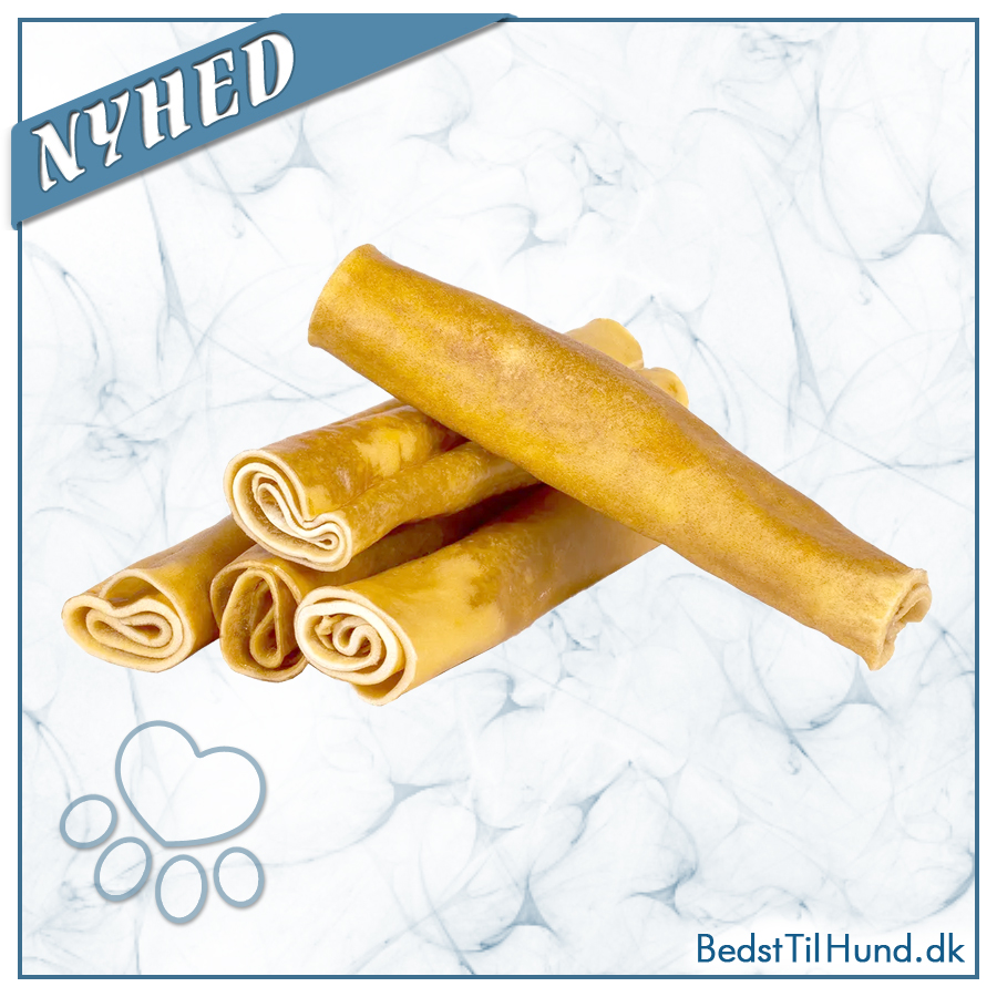 En robust tyggerulle til kronhjort, der er håndrullet med fokus på kvalitet og sikkerhed. Hver rulle er håndrullet af en finsk familievirksomhed med ægte håndværk. Skindet lufttørres og rulles uden kemiske tilsætningsstoffer eller blegning. Skindene kommer fra Norden. Resultatet er et naturligt tyggeprodukt, der er velegnet til hunde, der kan lide at tygge længe, og som foretrækker rene, ubehandlede råvarer.