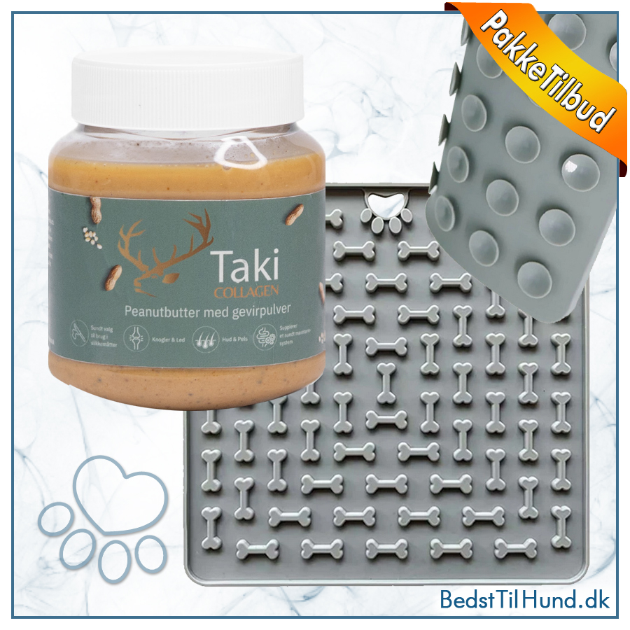 Sådan bruges den: Læg slikkemåtten på en glat overflade og tryk, så sugekopperne sætter sig fast på overfladen. Smør din hunds yndlingssnack på slikkemåtten (for eksempel Taki Peanutbutter). Du kan også drysse foderpiller eller godbidder over slikkemåtten. Brug denne slikkemåtte til din hunds/kats måltider, som belønning, som leg/aktivitet, for at undgå kedsomhed eller som en distraktion når du børster eller klipper negle eller i badet. Slikkemåtten kan også fryses, dvs. du kan smøre yndlingssnacken på, komme den i fryseren og vupti har du en lækker sommersnack der er med til at køle hunden.