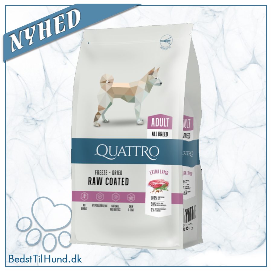 Hvis du har en hund med en følsom mave og har brug for en mere skånsom kost, er kræsen eller måske elsker smagen af lam, så er du kommet til det rette produkt. Et super premium foder til voksne hunde af alle racer, der indeholder lam. Dette hypoallergene hundemad er velegnet til meget følsomme hunde. Foderpillerne i QUATTRO hundemad er dækket med frysetørret lam, hvilket bevarer deres naturlige smag. Dette hundemad vil tilfredsstille selv de mest kræsne hunde.