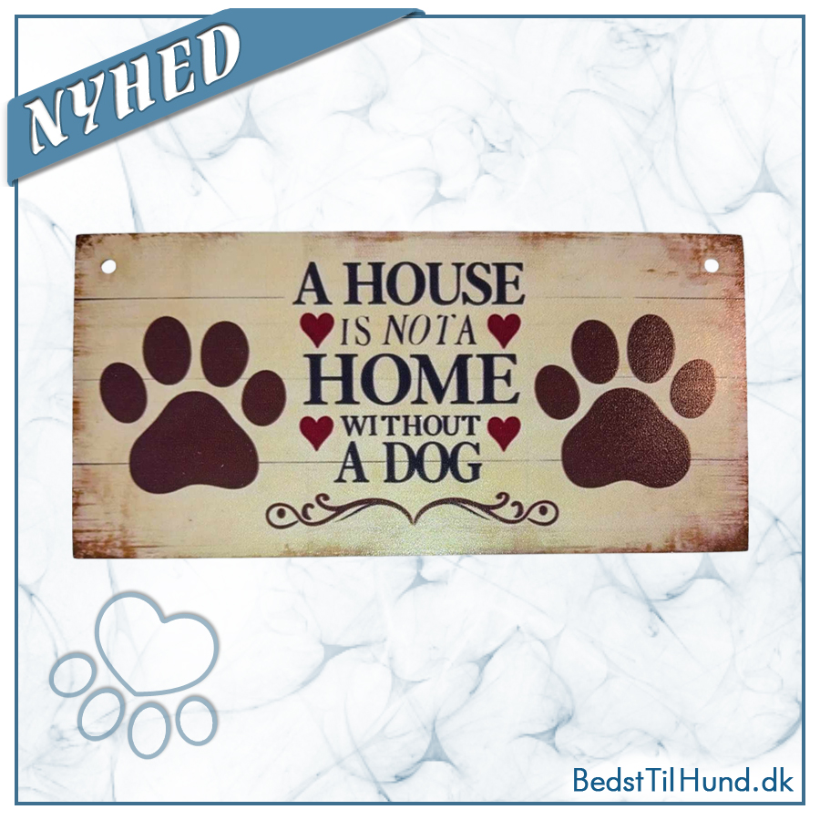 Sødt skilt med tekst og poteaftryk. Skiltet er trygt på finer og der medfølger en lille snor til at hænge det op i. Forkæl dig selv eller brug det som en sød lille gave til en der elsker hunde.