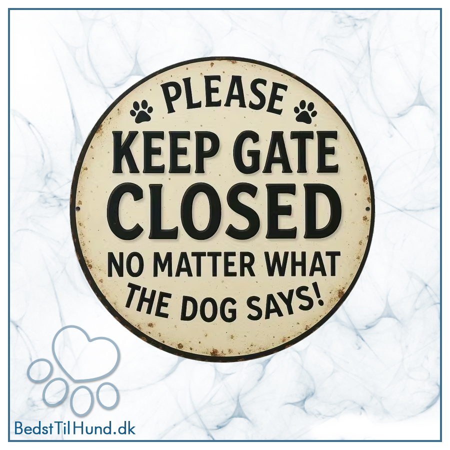 Humoristisk rundt skilt i antikt look. Skiltet er lavet i aluminium og kan bruges både inde og ude. Skiltet har en diameter på 20 cm.
