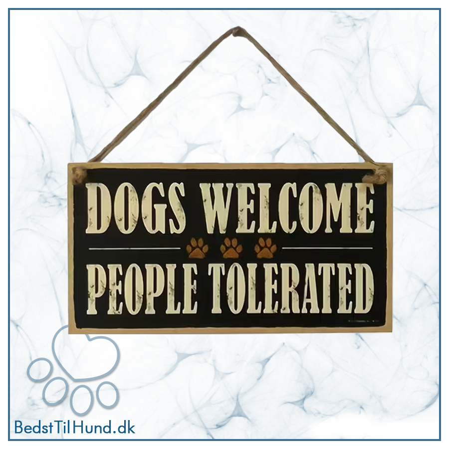 Sødt skilt med tekst og poteaftryk. Skiltet er trygt på finer og der medfølger en lille snor til at hænge det op i. Forkæl dig selv eller brug det som en sød lille gave til en der elsker hunde.