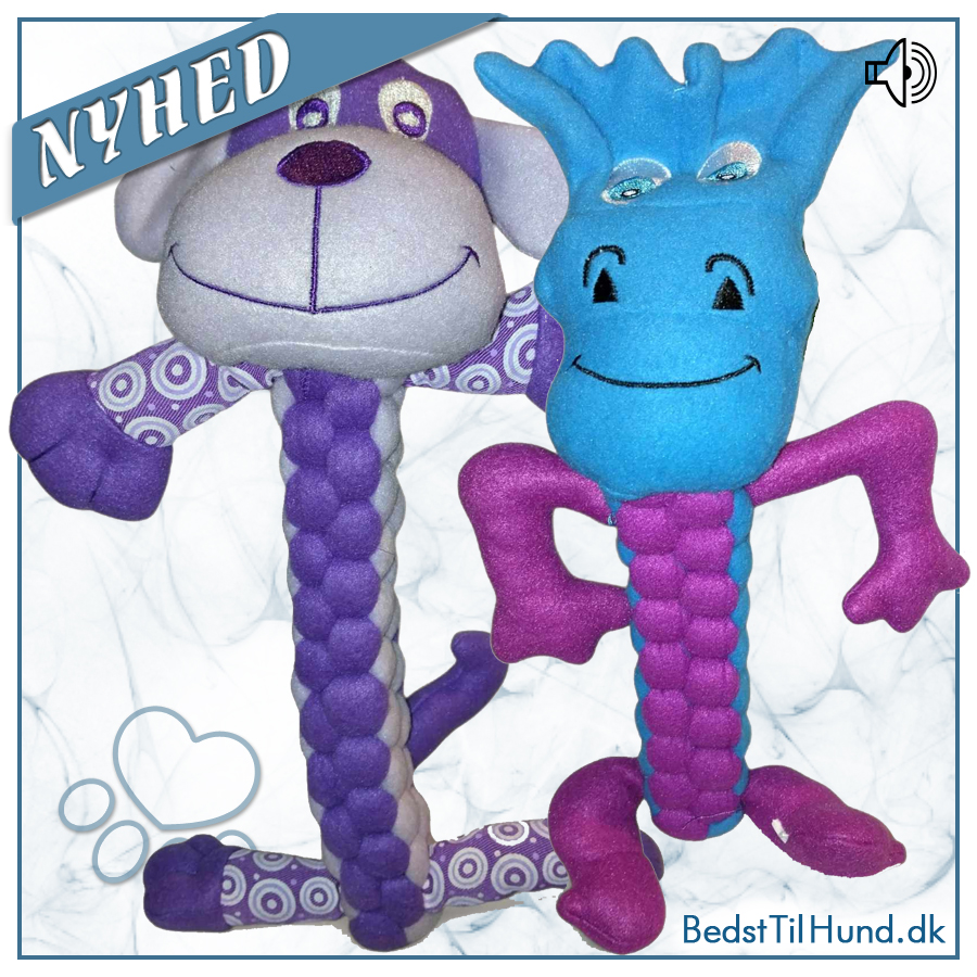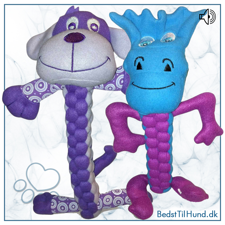 Skønne fleecedyr lige til at lege med. Den har kun bamseblod (fyld) hovedet hvor der også er et piv, for en sjovere leg. Det er en sjov bamse for hunden. Den er god at ligge og hygge med, men også til mere vilde rusketure. Perfekt til hvalpe! Dyrets krop er flettet/knyttet meget hård så den er helt stiv mens benene og hovedet er bløde.