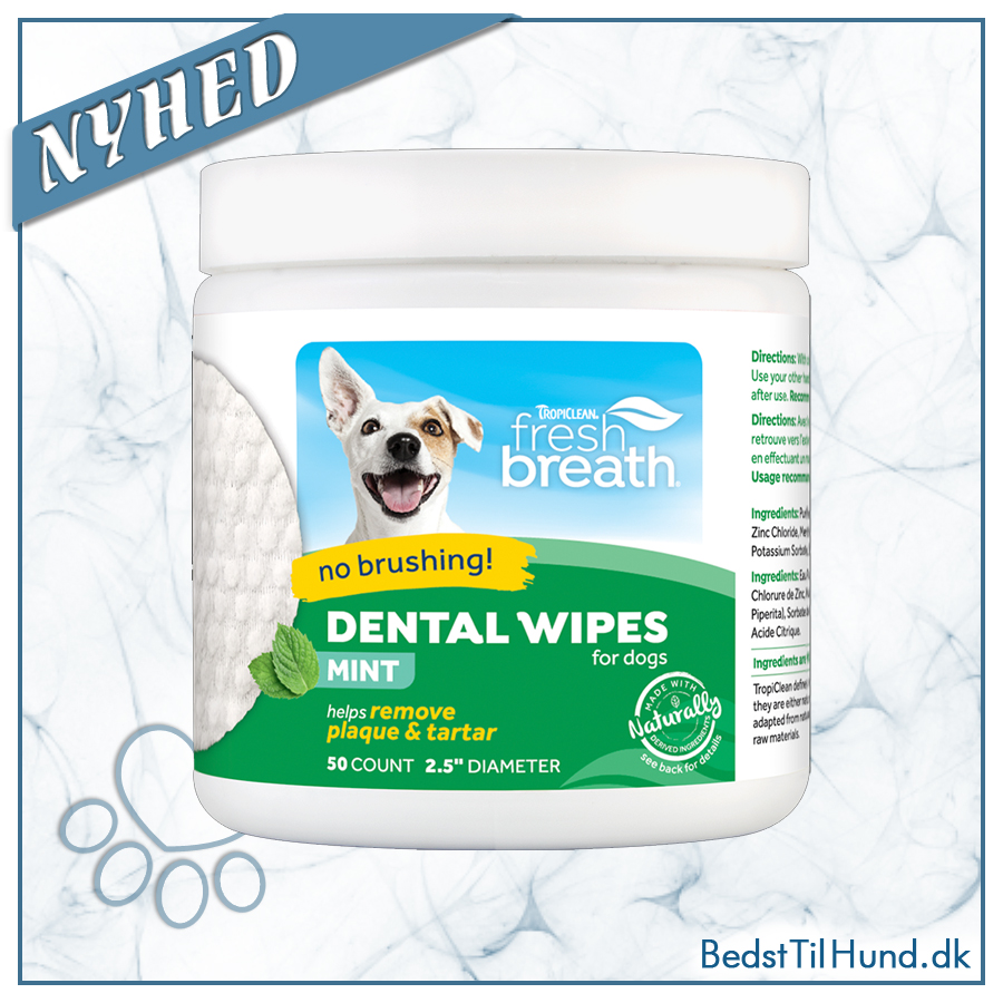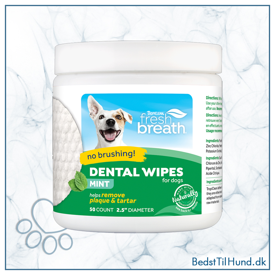 TropiClean Fresh Breath Dental Wipes er en sikker og nem måde at fjerne plak og tandsten fra din hunds eller kattens tænder. Den unikke strukturerede overflade fjerner effektivt plak og tandsten fra dit kæledyrs tænder, mens den unikke blanding af ingredienser arbejder sammen for at fjerne plak og tandsten sikkert og effektivt! Anbefalet brug: To gange dagligt eller efter måltider. Ingen børstning påkrævet!